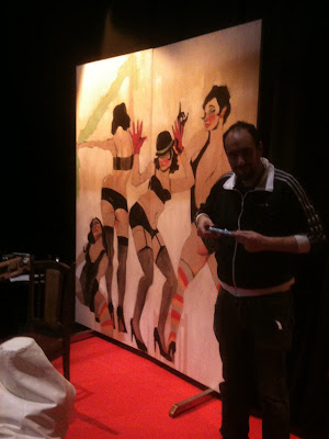 Per fer l’escenografia em va venir al cap de crear en dibuix una dansa (recreant-me en el Kit Kat Club de la peli de Cabaret) com que havíen de cantar vaig imaginar-me que faltaria ball.
